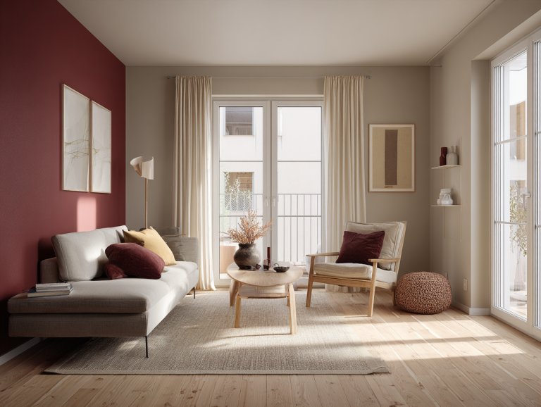 Scandi style usually uses soft whites, warm greys, muted beiges as the color base for all of the interior. Try using some subtle accents of other colours to really make them pop, but not overwhelm the palette. Various écru shades brighten the room, especially if it doesn’t get a lot of daylight.